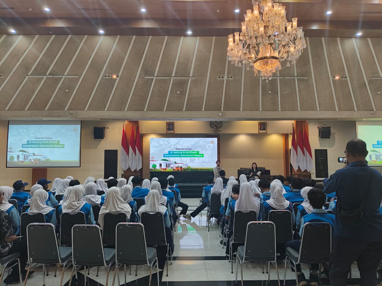 Perjalanan kemudian berlanjut ke Sekretariat Negara, di mana para siswa diperkenalkan dengan peran lembaga tersebut dalam mendukung administrasi pemerintahan dan penyelenggaraan tugas presiden. Kunjungan ini menjadi sarana belajar nyata tentang tata kelola negara.